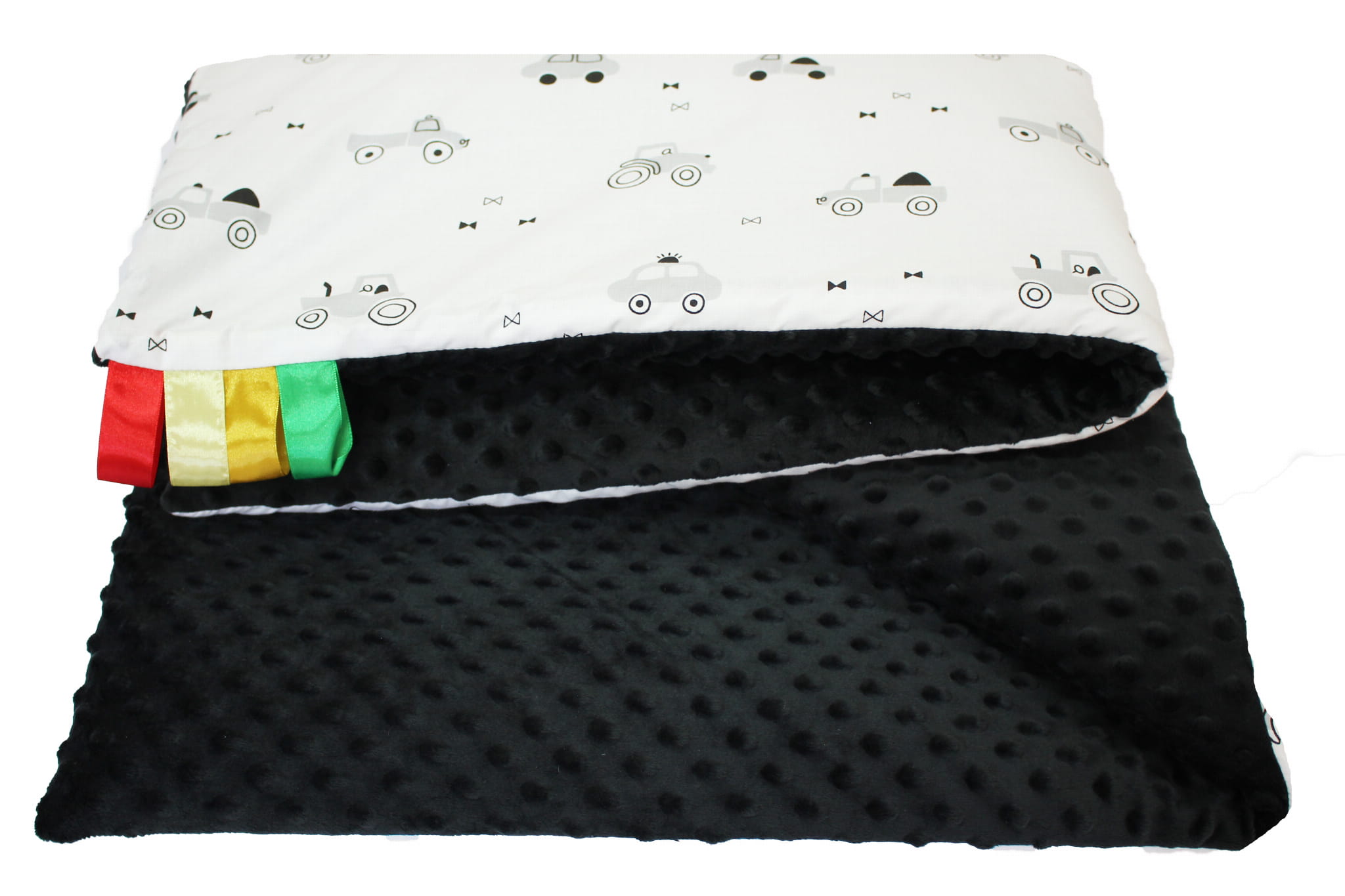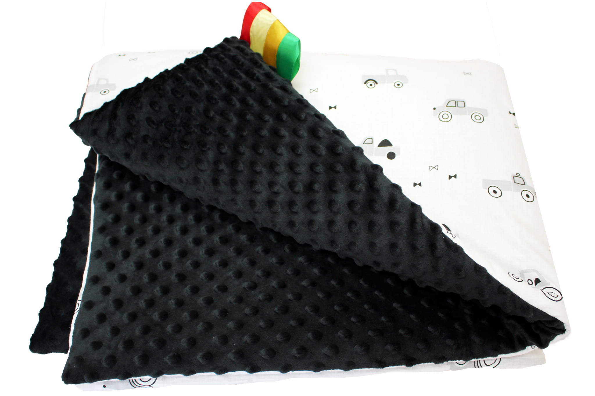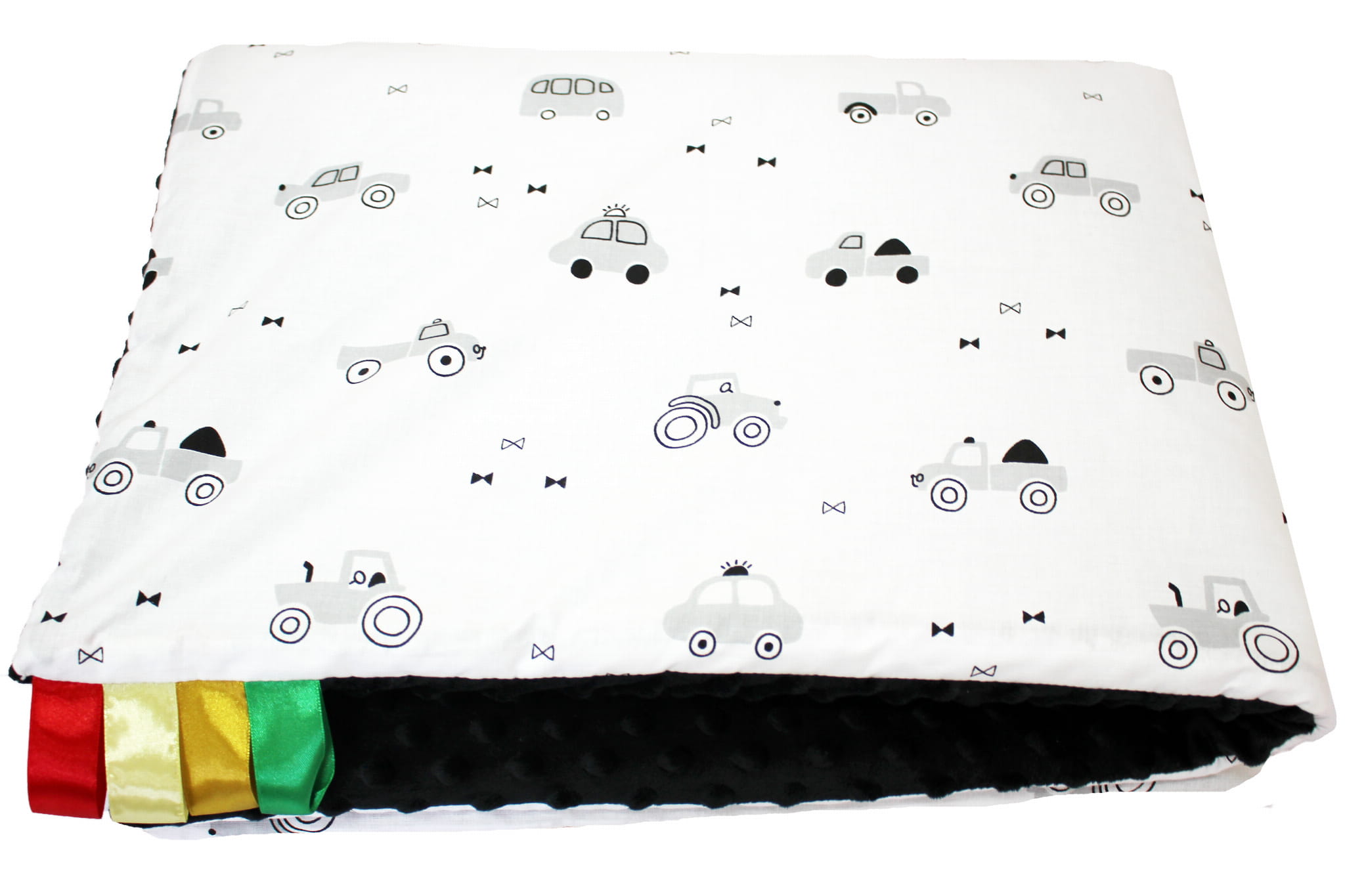 Kocyk dla dzieci i niemowląt MINKY 80x100 AUTKA NA BIAŁYM - MINKY CZARNY