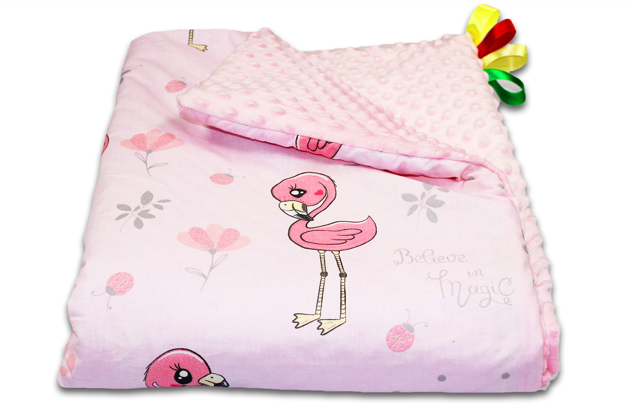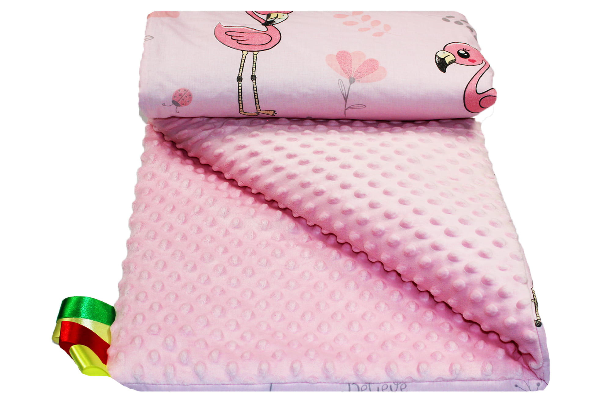 Kocyk dla dzieci i niemowląt MINKY 80x100 FLAMINGI RÓŻOWE - MINKY RÓŻOWE
