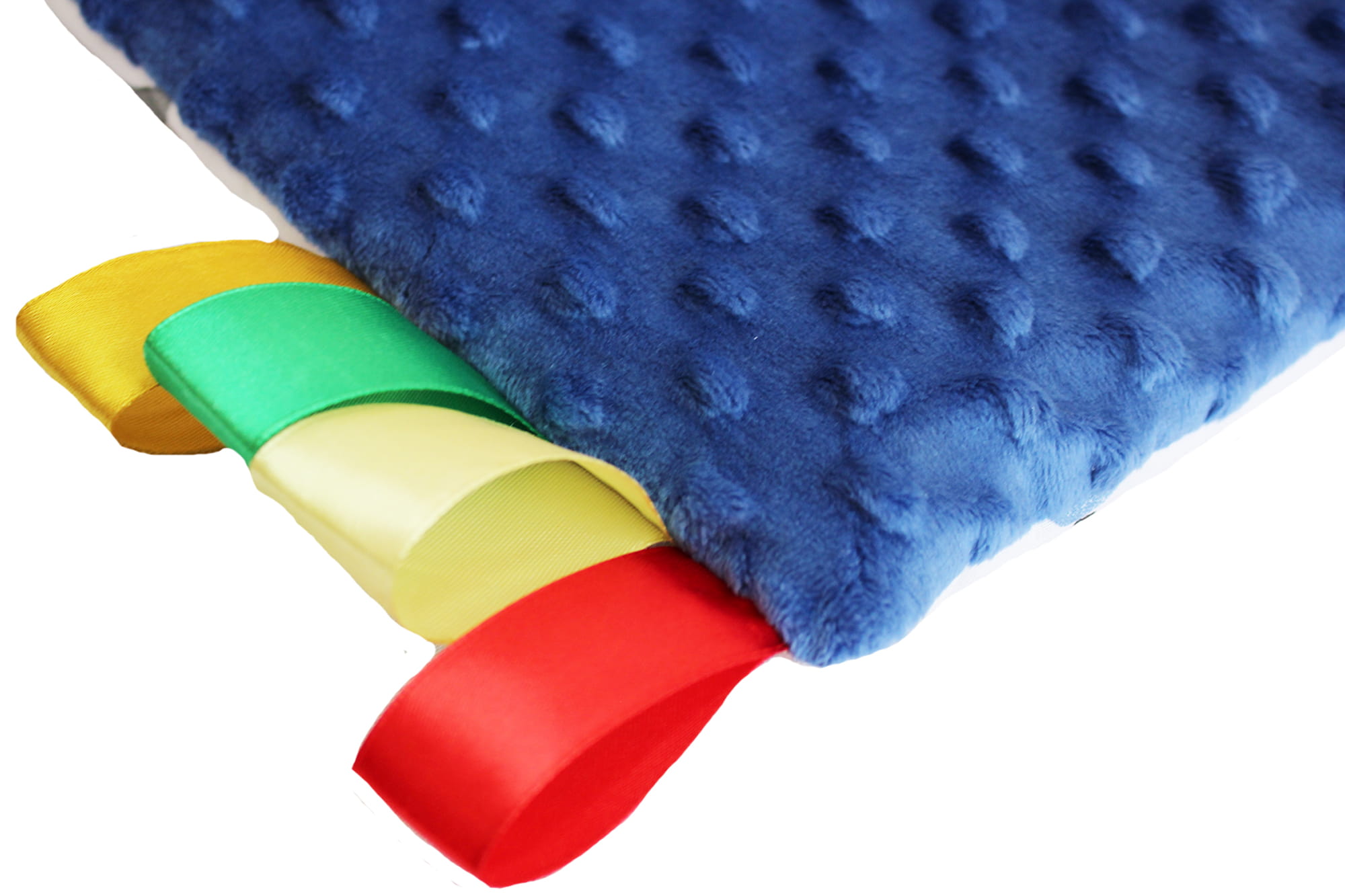 Z jednej strony znajdziesz miękką, 100% bawełnę w urocze, dziecięce wzory, a z drugiej niezwykle przyjemny w dotyku materiał Minky. Dzięki antyalergicznemu wypełnieniu o grubości 1,5 cm, kocyk zapewnia optymalne ciepło, nie powodując przegrzania. Dodatkowe, kolorowe tasiemki sensoryczne pobudzają zmysł dotyku i rozwijają wyobraźnię dziecka.