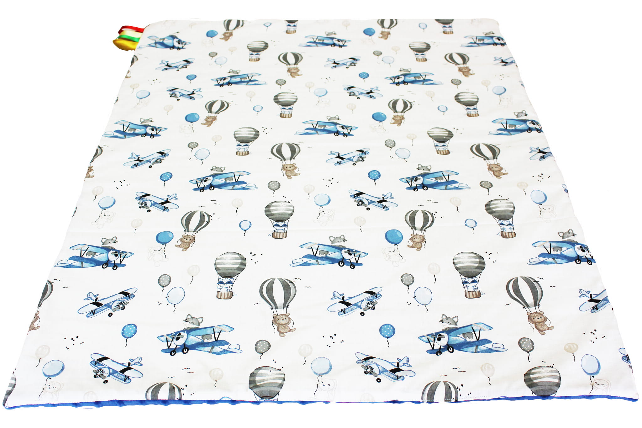 Kocyk dla dzieci i niemowląt MINKY 80x100 LIS W SAMOLOCIE NIEBIESKI - MINKY GRANAT