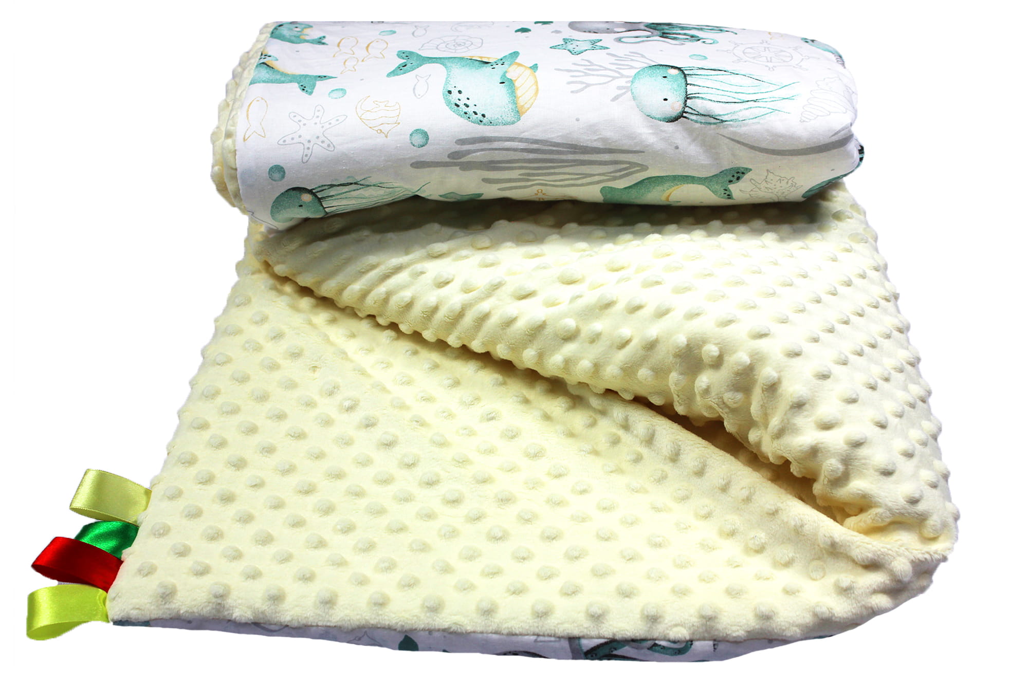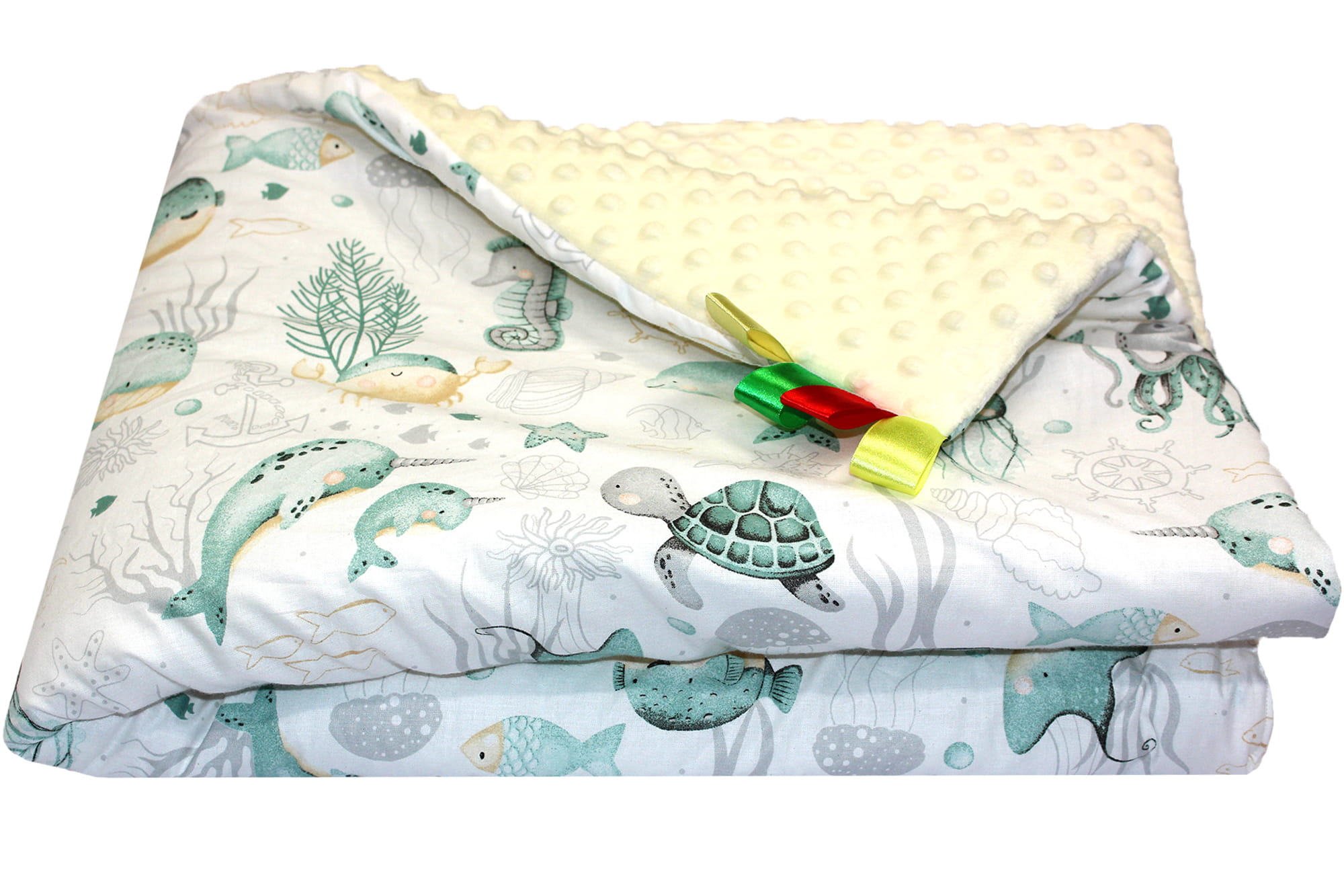 Kocyk dla dzieci i niemowląt MINKY 80x100 OCEAN ZIELEŃ - MINKY ECRU