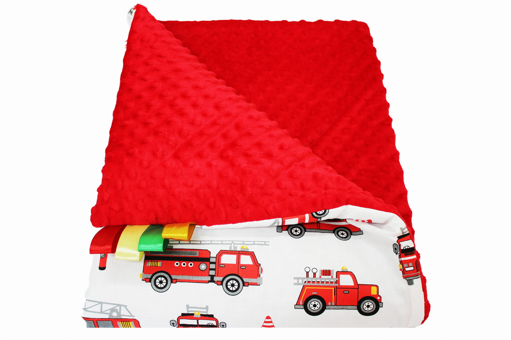Kocyk dla dzieci i niemowląt MINKY 80x100 / 100X135 WOZY STRAŻACKIE - MINKY CZERWONE