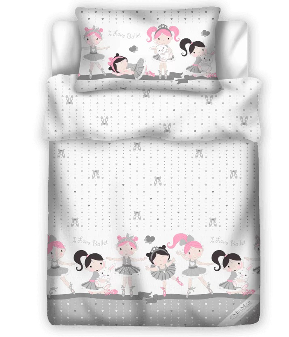 Pościel 100% BAWEŁNA Renforce DLA DZIECI | 135x100cm (poszwa) + 1x 40x60cm (poszewka) | Do łóżeczka, przedszkola, żłobka | Wykończenie satynowe | BALETNICE