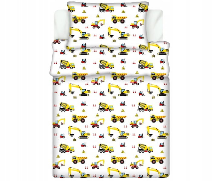 Pościel 100% BAWEŁNA Renforce DLA DZIECI | 135x100cm (poszwa) + 1x 40x60cm (poszewka) | Do łóżeczka, przedszkola, żłobka | Wykończenie satynowe | KOPARKI