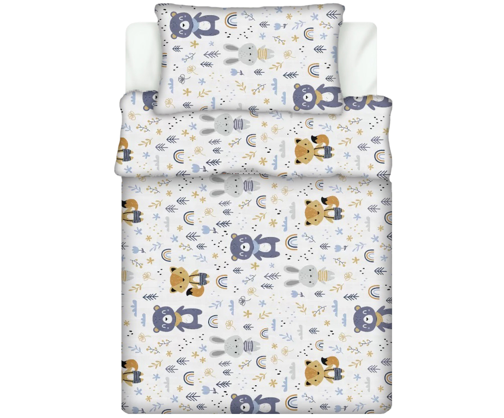 Pościel 100% BAWEŁNA Renforce DLA DZIECI | 135x100cm (poszwa) + 1x 40x60cm (poszewka) | Do łóżeczka, przedszkola, żłobka | Wykończenie satynowe | KUMPLE Z LASU