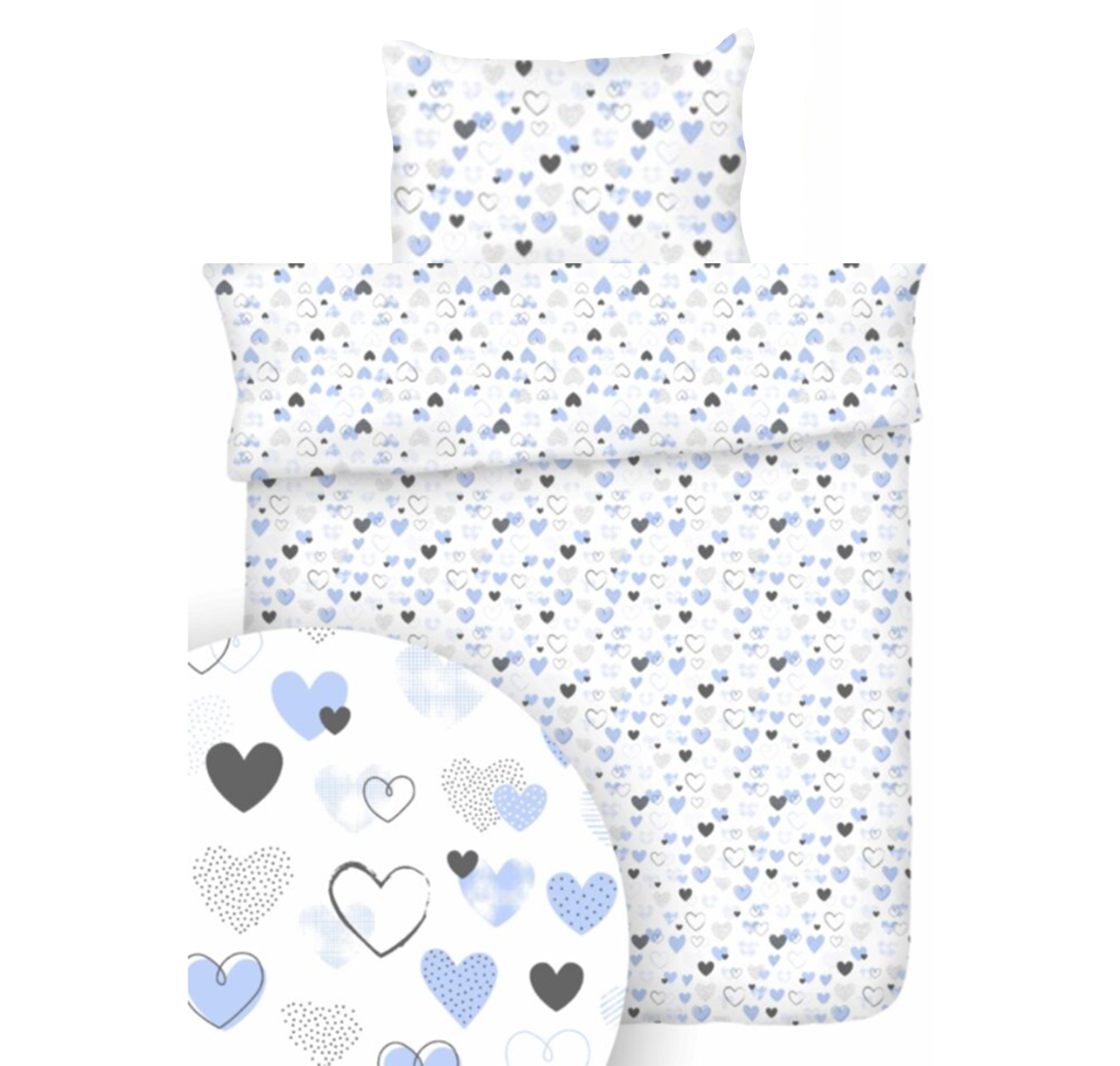 Pościel dla dzieci (do łóżeczka) 100% BAWEŁNA 140x200cm (+ poszewka 70x80cm) | NIEBIESKIE SERDUSZKA