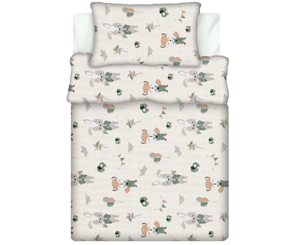 Pościel 100% BAWEŁNA Renforce DLA DZIECI | 90x120cm (poszwa) + 1x 40x60cm (poszewka) | Do łóżeczka | Wykończenie satynowe | LIS I KRÓLIK