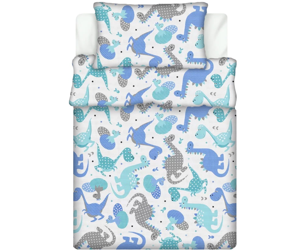 Pościel 100% BAWEŁNA Renforce DLA DZIECI | 90x120cm (poszwa) + 1x 40x60cm (poszewka) | Do łóżeczka | Wykończenie satynowe | DINO