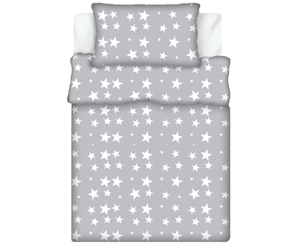 Pościel 100% BAWEŁNA Renforce DLA DZIECI | 90x120cm (poszwa) + 1x 40x60cm (poszewka) | Do łóżeczka | Wykończenie satynowe | GWIAZDKI NA SZARYM