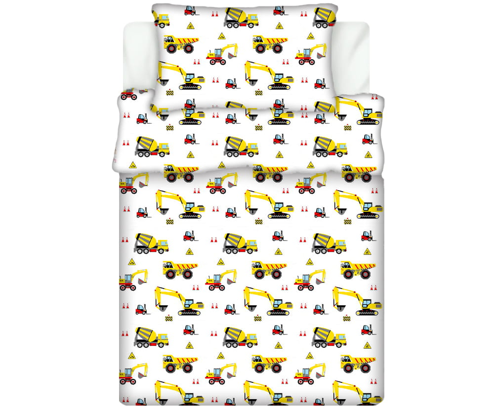 Pościel 100% BAWEŁNA Renforce DLA DZIECI | 90x120cm (poszwa) + 1x 40x60cm (poszewka) | Do łóżeczka | Wykończenie satynowe | KOPARKI