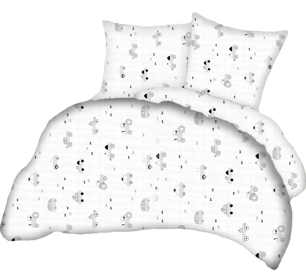 Pościel 100% BAWEŁNA Renforce | 160x200cm (poszwa) + 2x 70x80cm (poszewki) | Wykończenie satynowe | AUTKA SZARE NA BIAŁYM