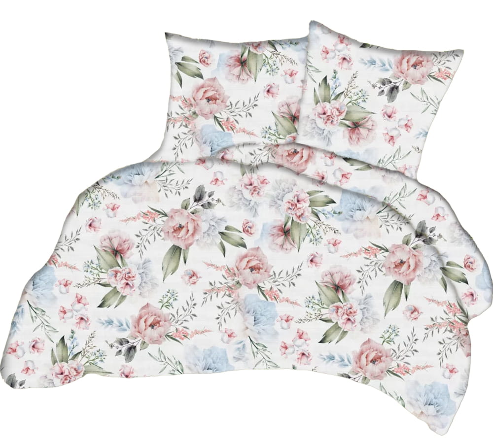 Pościel 100% BAWEŁNA Renforce | 160x200cm (poszwa) + 2x 70x80cm (poszewki) | Wykończenie satynowe | BOTANIKA NIEBIESKO-RÓŻOWA