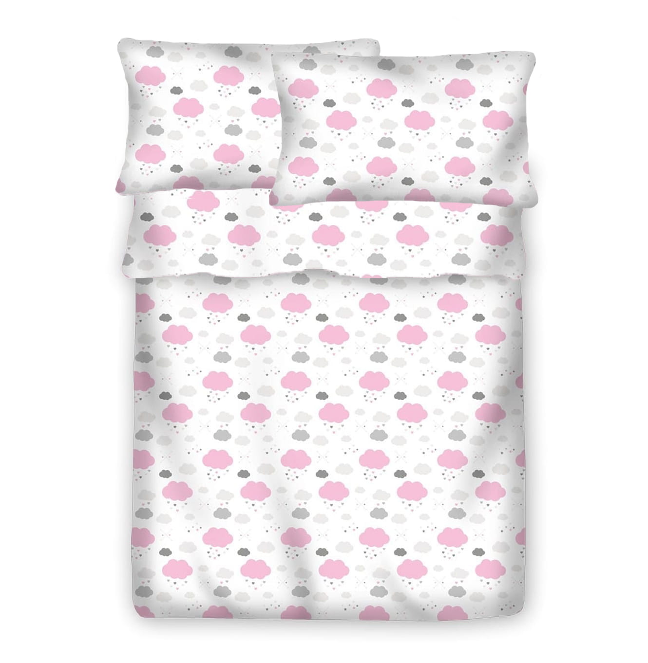 Pościel 100% BAWEŁNA Renforce | 160x200cm (poszwa) + 2x 70x80cm (poszewki) | Wykończenie satynowe | CHMURKI RÓŻOWE NOWE