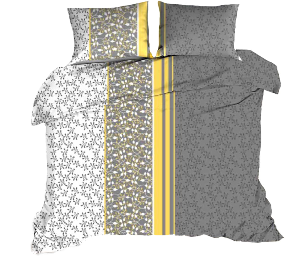 Pościel 100% BAWEŁNA Renforce | 160x200cm (poszwa) + 2x 70x80cm (poszewki) | Wykończenie satynowe | GAŁĄZKI Z ŻÓŁTYM