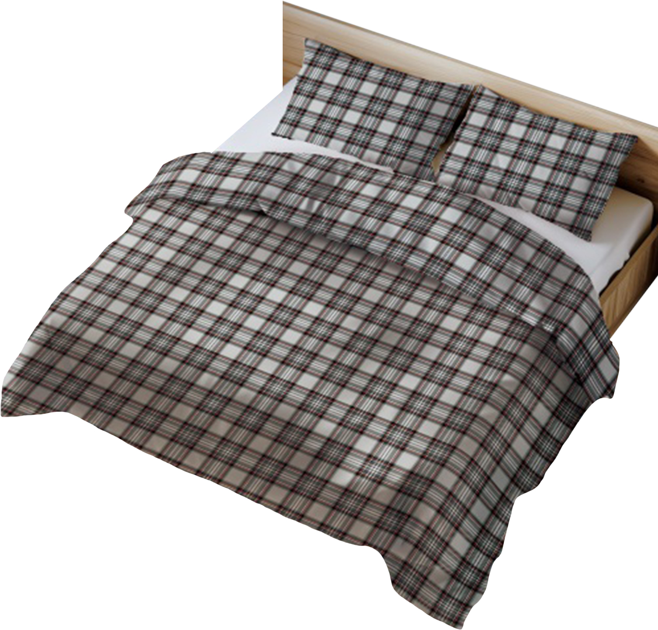 Pościel 100% BAWEŁNA Renforce | 160x200cm (poszwa) + 2x 70x80cm (poszewki) | Wykończenie satynowe | KRATA SZKOCKA POPIEL