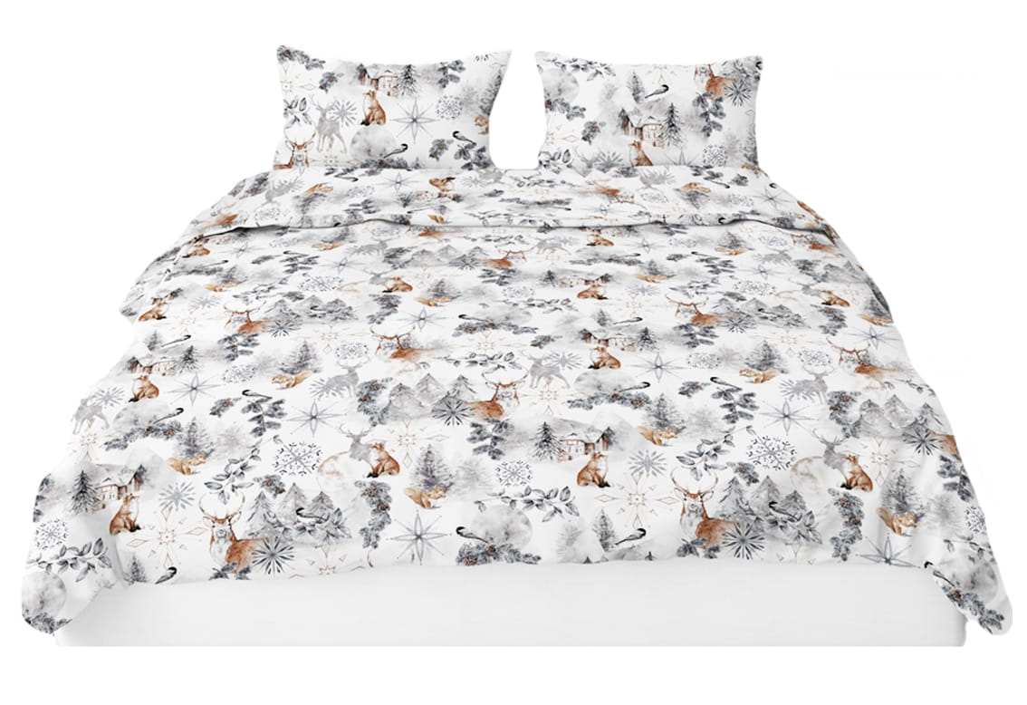 Pościel 100% BAWEŁNA Renforce | 160x200cm (poszwa) + 2x 70x80cm (poszewki) | Wykończenie satynowe | ZIMA SZARA