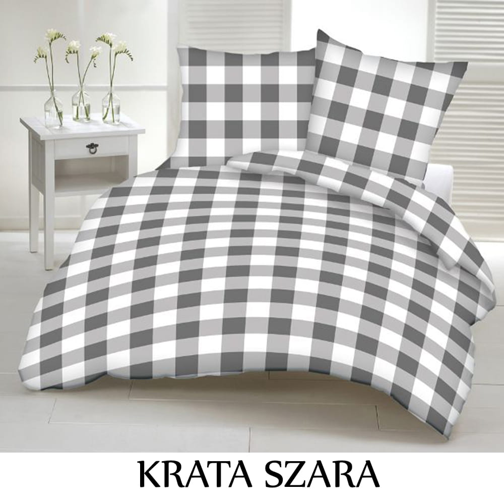Pościel hotelowa 100% Bawełna Renforce Wykończenie Satynowe | KRATA SZARA