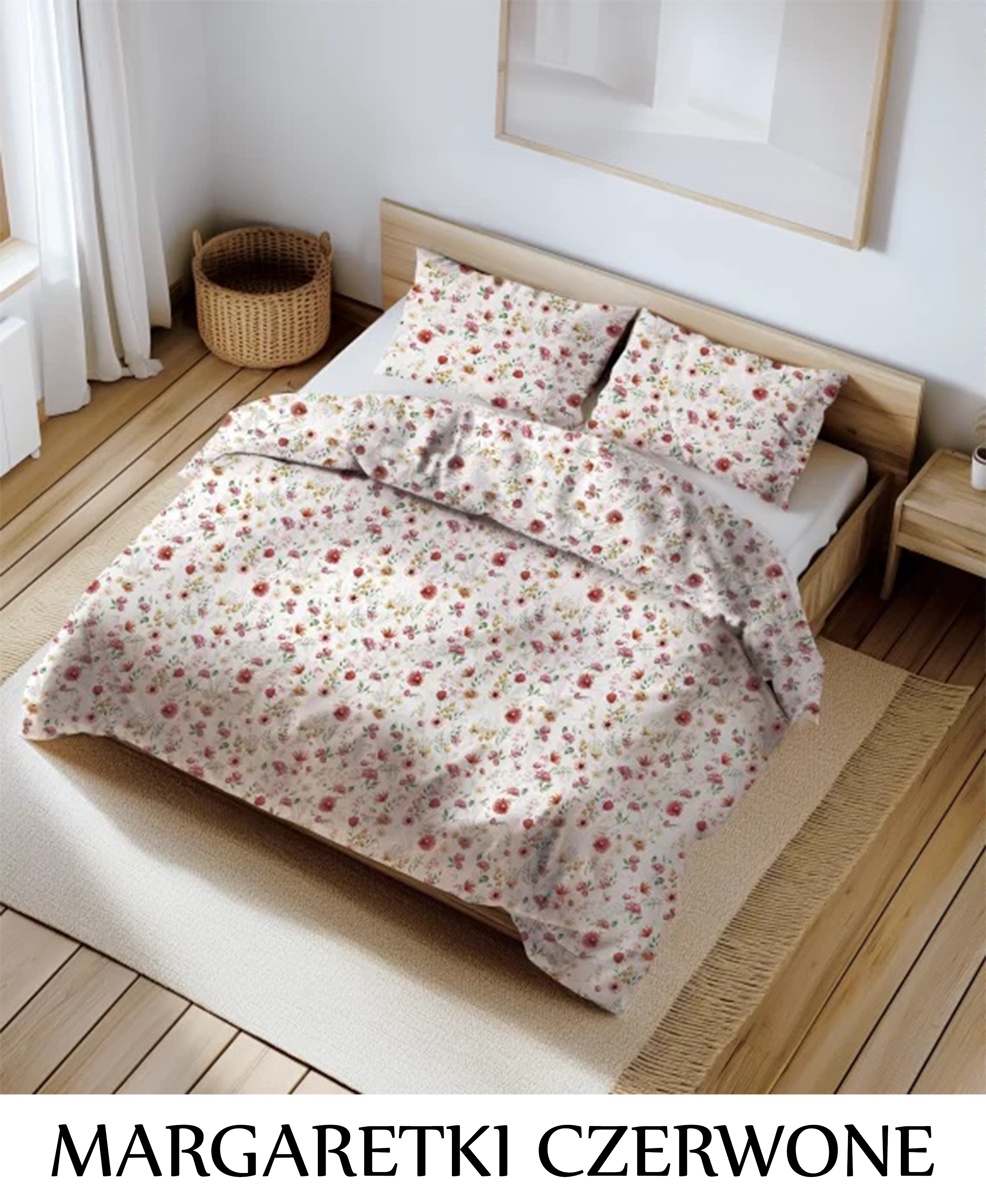 Pościel hotelowa 100% Bawełna Renforce Wykończenie Satynowe | MARGARETKI CZERWONE