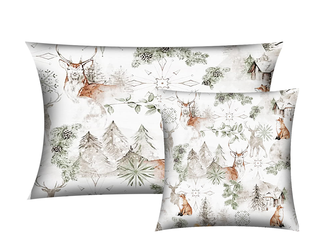 POSZEWKA ŚWIĄTECZNA NA PODUSZKĘ JASIEK 30x50cm 40x40cm 40x60cm 45x45cm 50x50cm 100% BAWEŁNA RENFORCE WYKOŃCZENIE SATYNOWE | ZIMA ZIELONA