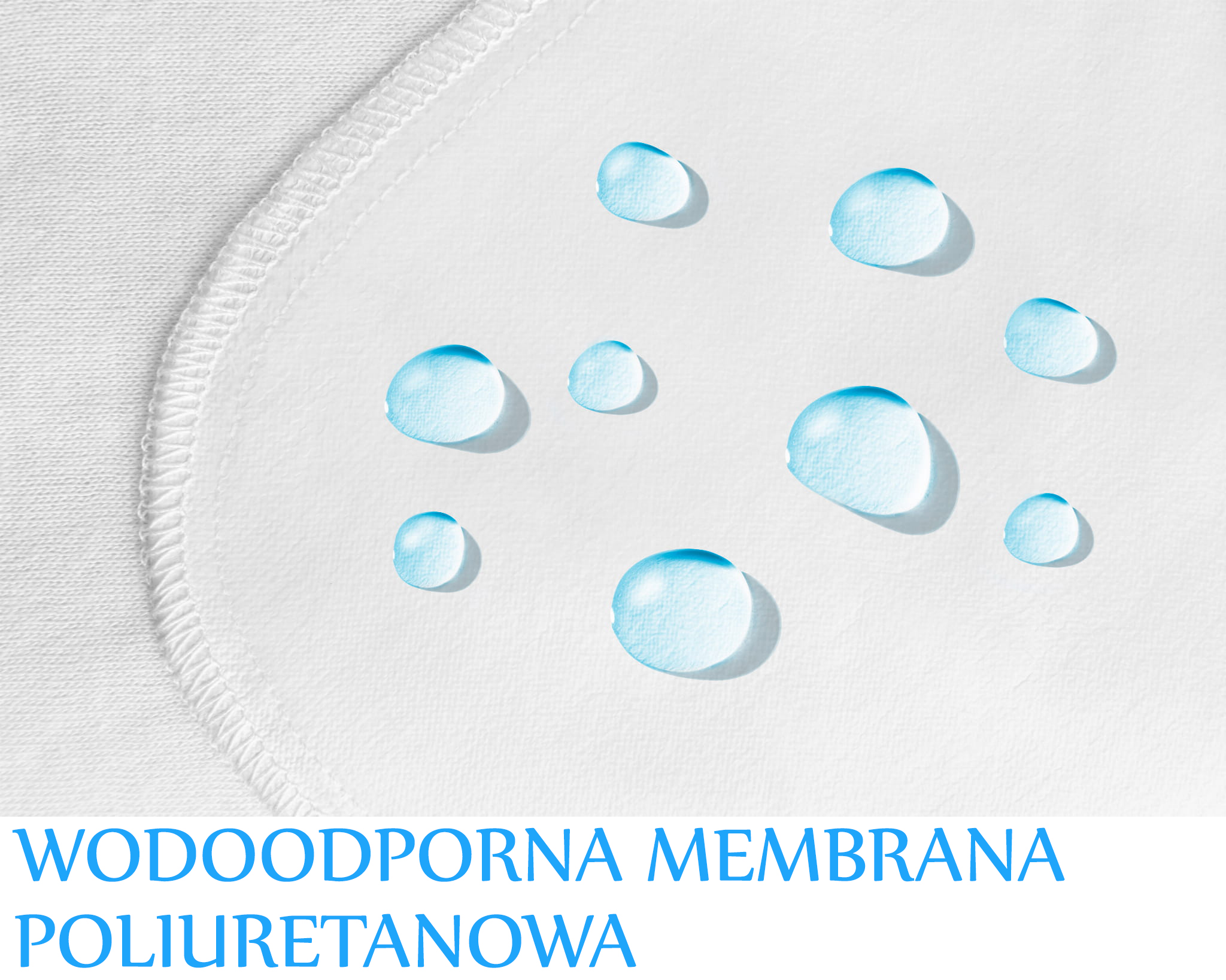 - PRZEŚCIERADŁO OCHRONNE NA MATERAC DZIECIĘCE | 18% włókno poliestrowe + 82% bawełna + 100% PU membrana + zakończone gumką | GRAMATURA: 160g/m2