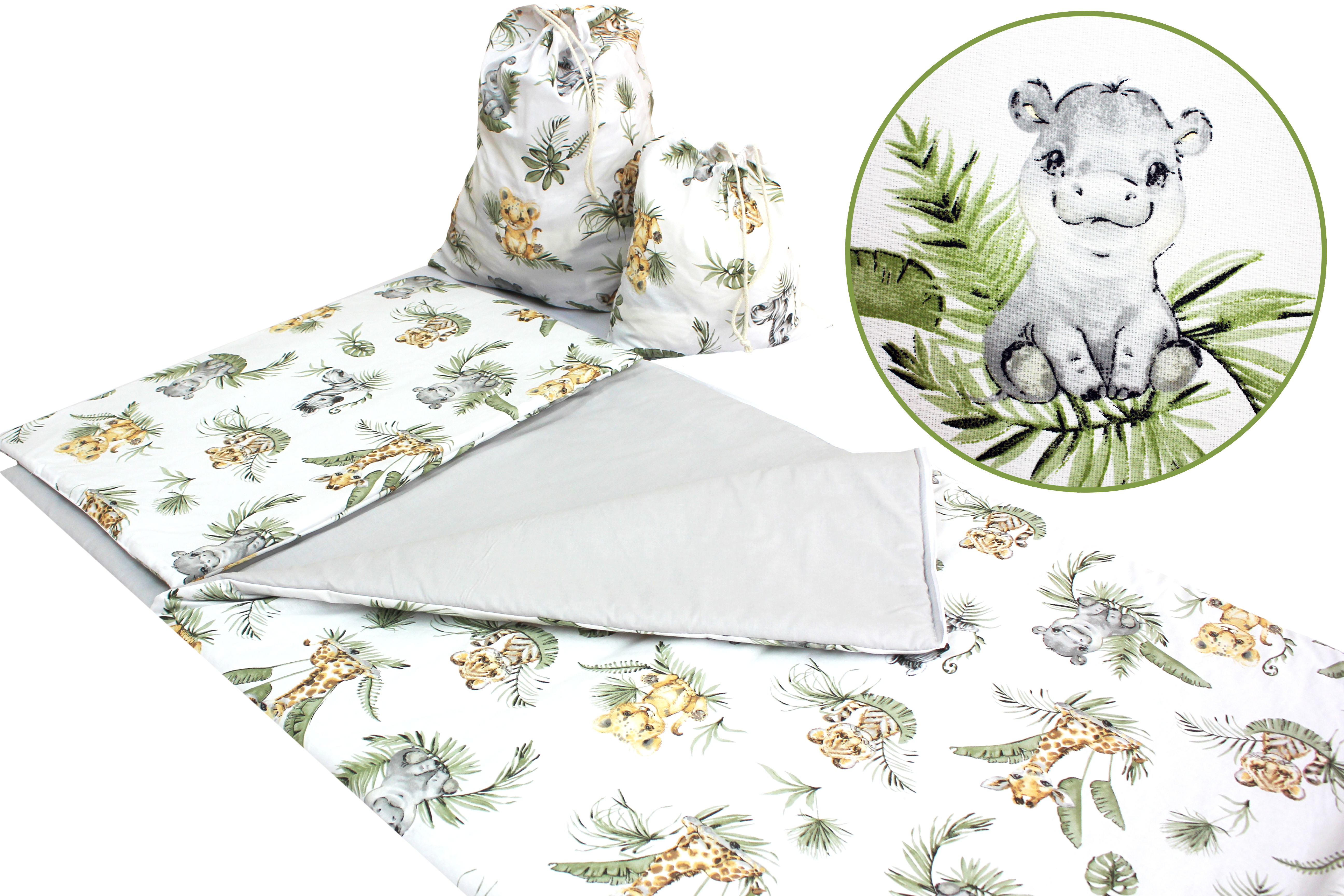 ŚPIWOREK DLA DZIECKA PRZEDSZKOLAKA 70x125 cm / 75x140 cm SAFARI + JASNY POPIEL
