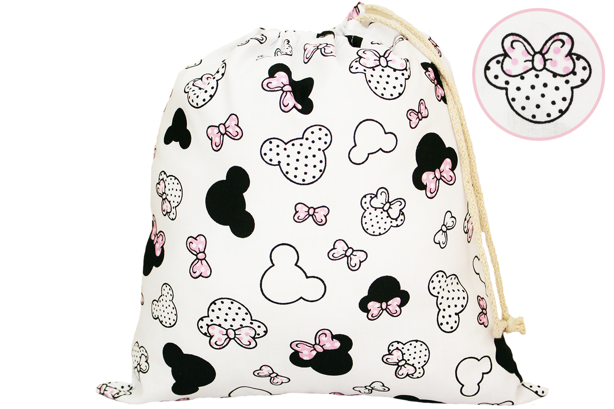 WOREK NA BUTY KAPCIE STRÓJ GIMNASTYCZNY 32x38cm DO SZKOŁY I PRZEDSZKOLA | MIKI KOKARDKI RÓŻOWE