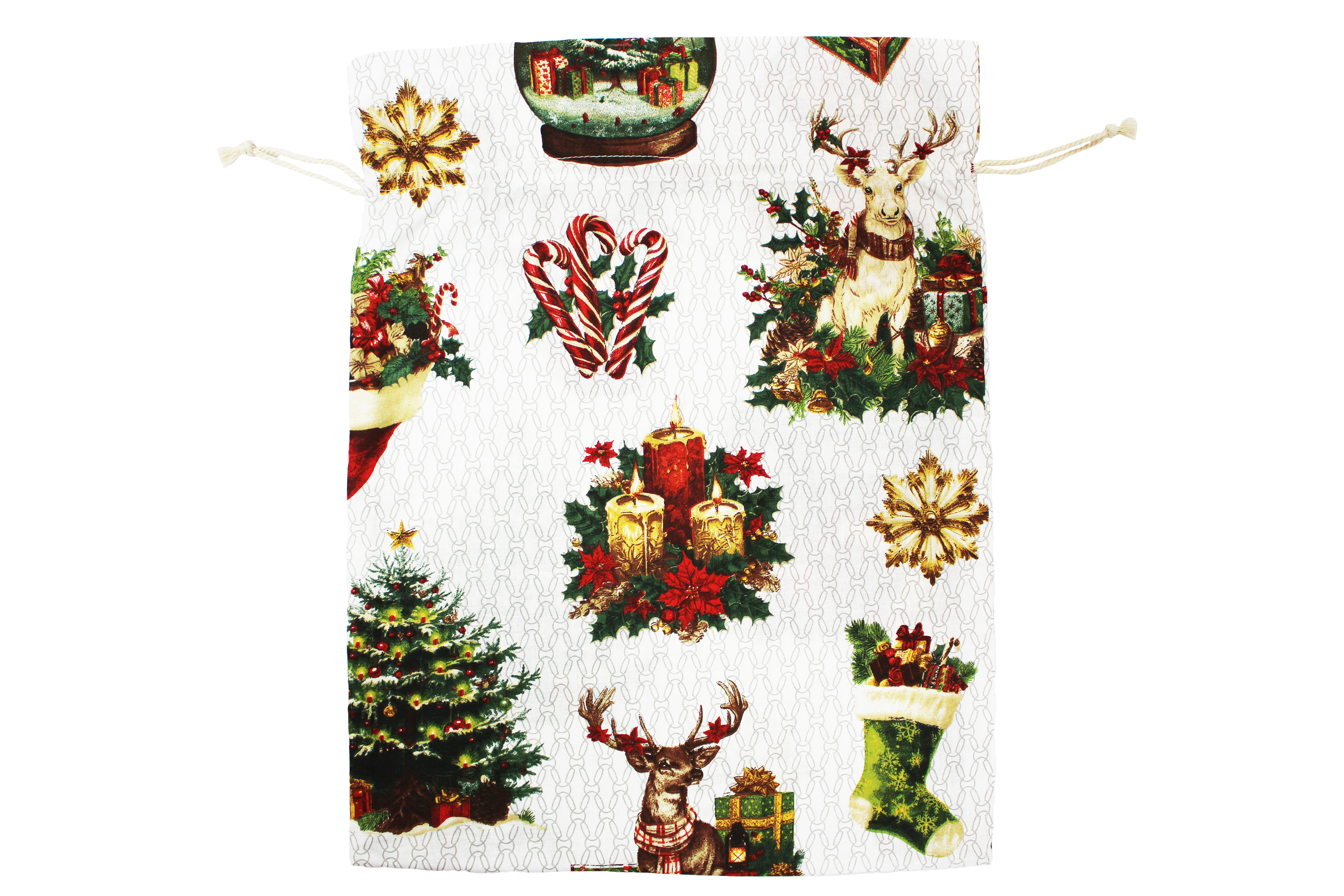 Stwórz niezapomnianą świąteczną atmosferę i pożegnaj się z jednorazowym papierem! Ten elegancki, bawełniany worek na prezenty Mikołaja to idealne rozwiązanie, które doda blasku każdej choince. Wykonany z trwałej i gęstej bawełny typu Renforcé, worek nie tylko pięknie wygląda, ale jest także przyjazny dla środowiska, stanowiąc ozdobę wielokrotnego użytku na wiele lat. Wzór nadruku doskonale wpisuje się w najnowsze trendy dekoracji bożonarodzeniowych, łącząc tradycję z nowoczesną estetyką.