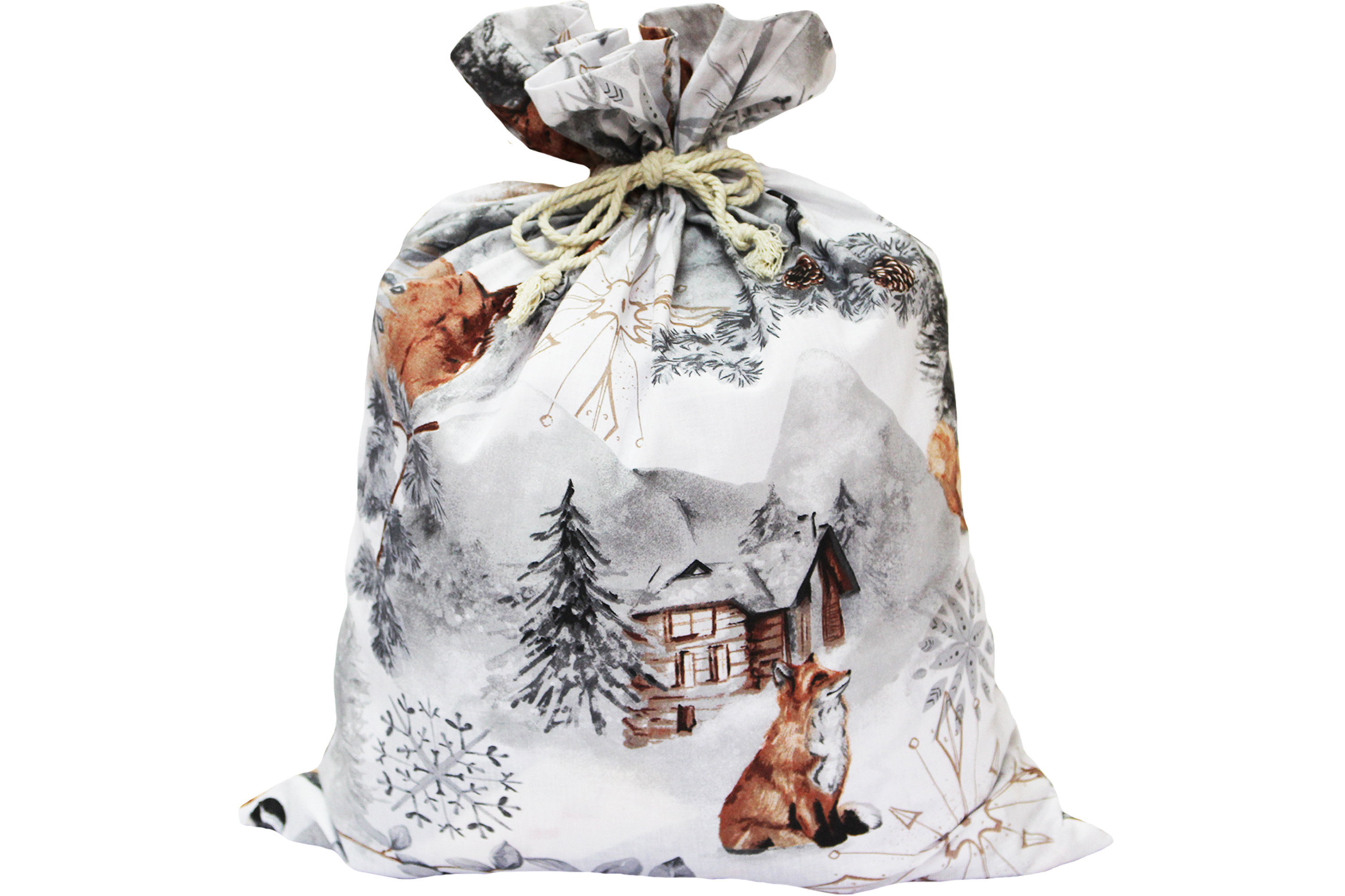 Worek na prezenty ŚWIĄTECZNE MIKOŁAJA TORBA PREZENTOWA | Zima szara